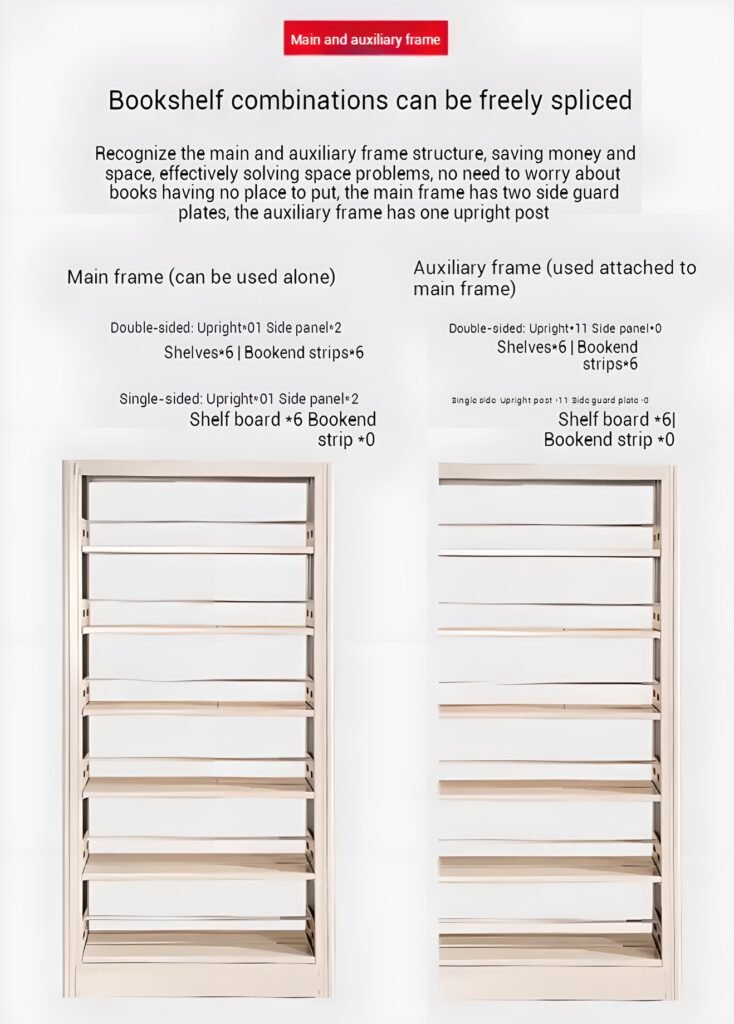 The base frame of our Heavy-Duty Modular Metal Bookshelves for Classroom and Library Storage features a revolutionary segmented combination design. This innovative approach offers significant advantages: