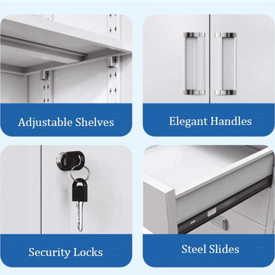 The standout feature of the Tongbo file cabinet is its innovative adjustable partition system. These steel dividers can be repositioned or removed entirely to accommodate items of various sizes. Whether storing bulky binders, slim files, or irregular supplies, the adjustable partition file cabinet adapts instantly. This flexibility makes the Tongbo file cabinet ideal for evolving storage needs. Users can create customized compartments that maximize every inch of available space.